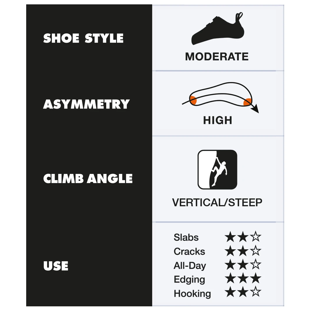 The special thing about this shoe is its grippy NeoFriction Force rubber designed for small holds, edging and optimal comfort and performance. The Women’s Focus is an excellent shoe that you can turn to for redpointing difficult routes as well. Other excellent features include the slight heel tension, durable leather and Engineered Knit Technology for increased breathability. Perfect for routes in slightly overhanging terrain!