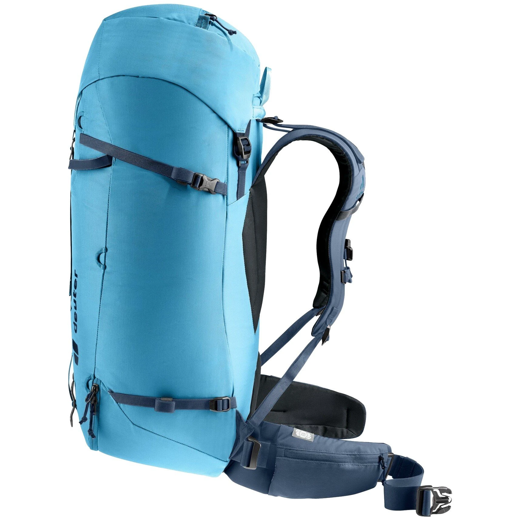 The Guide range from Deuter is specifically designed for mountaineering, consequently, they have a streamlined, funnel design with flattened straps to minimize snagging whilst on a rock face. Constructed entirely from tightly woven material for high abrasion/water resistance, the pack can stand up to the worst of mountain environments.