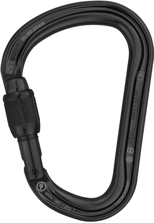 The William features automatic locking with a triple-action gate opening. The pear shape provides you with a large capacity, wide opening and easy handling. A keylock system prevents snagging of the carabiner, whilst the H cross-section prevents abrasion and gives you a great strength/weight ratio.