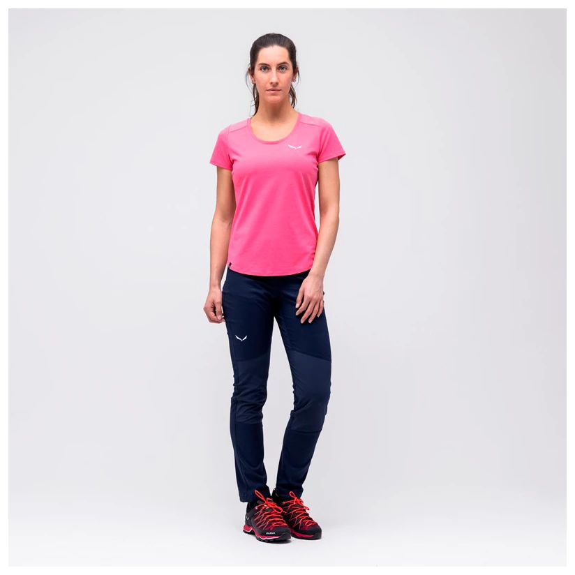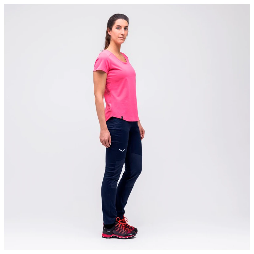 The trousers are made of soft organic cotton, breathable synthetic fibre and temperature-regulating hemp. As a result, moisture will be reliably wicked away to the outside and the trousers will dry quickly again. The elastic seams and the ergonomic gusset insert in the crotch perfectly round off the comfortable Women’s Alpine Hemp Tights climbing trousers from Salewa.